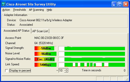 Below is a screen shot from the Cisco Aironet Site Survey Utility