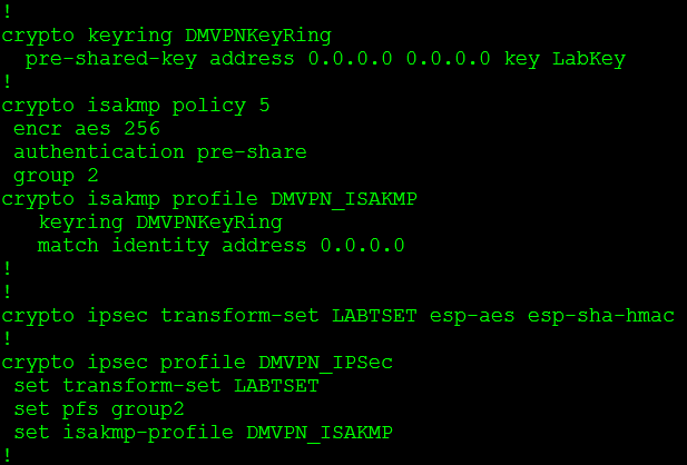 Now that we have the IPSec parameters configured let’s go ahead and configure our tunnel interface for an encrypted DMVPN, so let’s start with the hub: