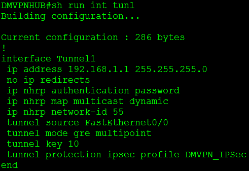 So there it is, the DMVPN hub, only a few these commands are typical of a normal GRE tunnel but most of them are specific to the DMVPN configuration. Let’s talk about a few these commands: