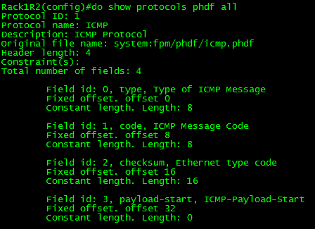 Before you can configure flexible packet matching, you will first need load a PHDF, Protocol Header Definition File. The PHDF is an XML file that outlines the format of the protocol header, the name of the fields, the length of the fields, and where the fields start within the packet. Below is sample of the XML text with the icmp.phdf: