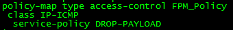 To tie together, the ‘stack’ & the ‘access-control’ class-map we will need to create another ‘access-control’ policy-map referencing the ‘stack’ class-map as a class, and then referencing the class-map containing our action as a service-policy.