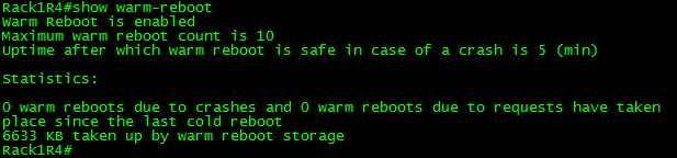 - As mentioned after the initial configuration of the warm reload you need to initiate another reload of the router before the feature really becomes active.