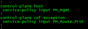 Now, that applies a CPPr policy to two different control-plane interfaces, if you simply want to perform CoPP you could do the following: