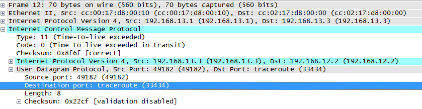 Now with Cisco the destination will not answer back with reply packet but surprising enough a destination unreachable packet. See below (Notice the source of the IP packet, it’s the destination of our traceroute)