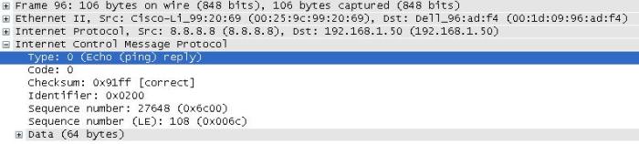 The other key difference between Windows and Cisco, is when the destination is reached it replies back with an ICMP echo reply: