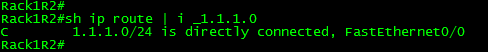 Let’s say you want to easily to pick out and view individual routes in the routing table or BGP table, here I used the underscore “_” regular expression to pick out only the route I wanted. This also works quite well to quickly see the default route.
